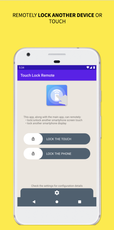 - remotely lock and unlock the screen touch using another Android device.