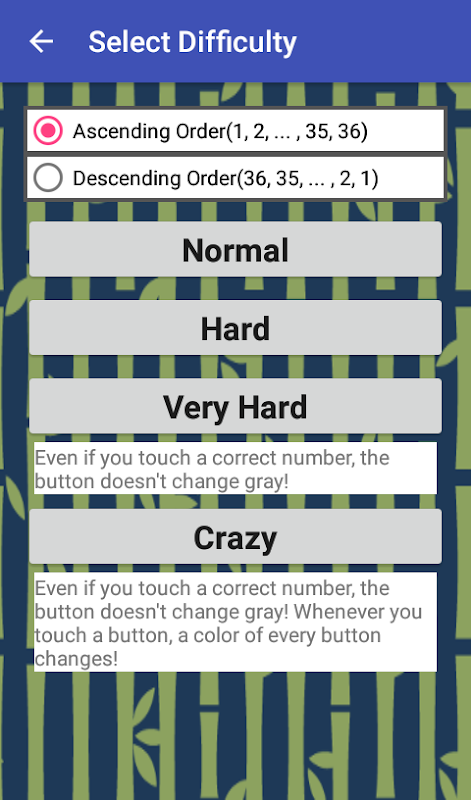 Touch the numbers in order! It serves some difficulty. Try crazy mode !