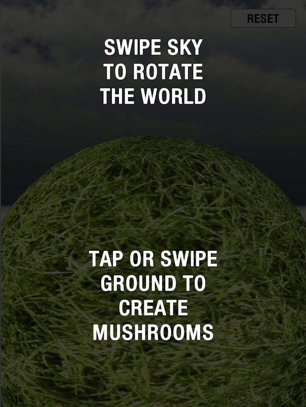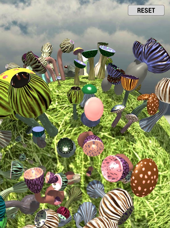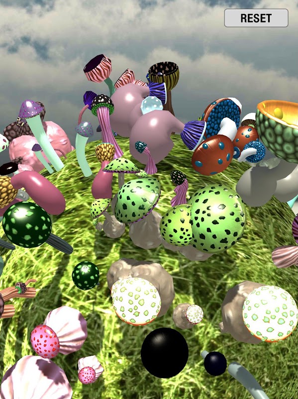 Procedurally generated 3D mushrooms with configurable characteristics. Swipe the sky to rotate the mini grass planet. Touch the ground to spawn unique mushrooms. Swipe the ground to leave a trail of similar styled mushrooms.