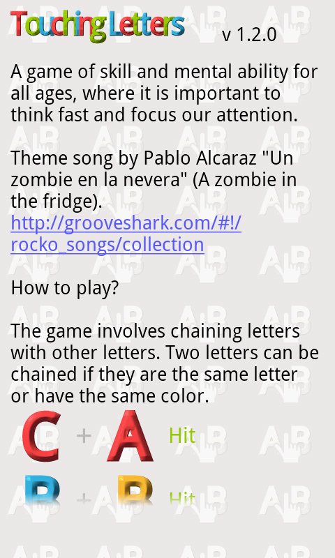 The game involves chaining letters with other letters. Two letters can be chained if they are the same letter or have the same color.