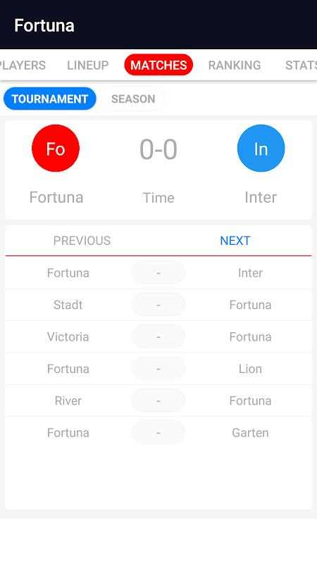 Also you can create players for your teams and enrich your tournaments with a lot of statistics.
