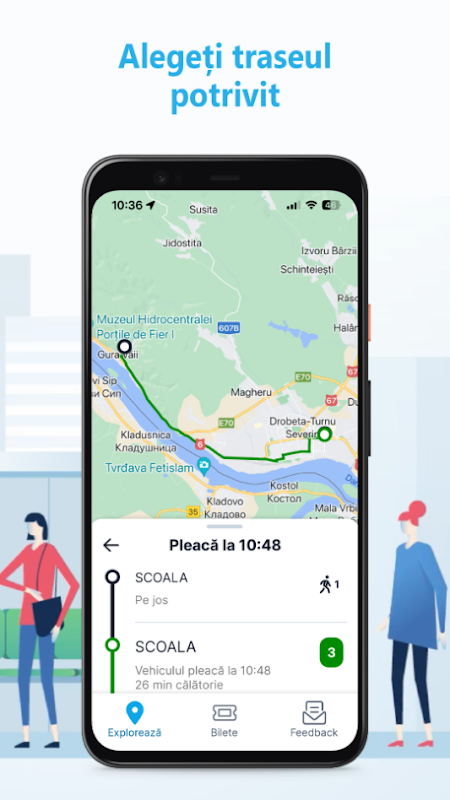 Toate acestea - folosind telefonul dumneavostra si o singura aplicatie! Aplicatia TPU DROBETA are o interfata simpla si prietenoasa care va putea fi folosita de calatori de toate varstele. Scurtati timpul de planificare a calatoriei si de a cumpara si valida un bilet.)