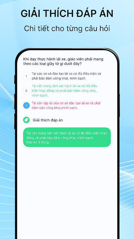 Bu uygulama, hem motosikletler hem de arabalar için ehliyet testini (GPLX) desteklemek üzere tasarlanmış 600 resmi soruyu sentezler.