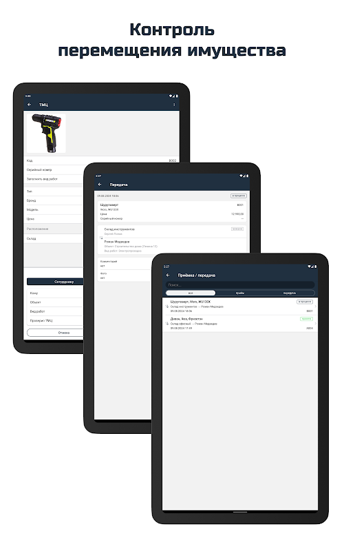 Uygulama yalnızca mülkün mevcut konumunu izlemenize değil, aynı zamanda farklı çalışanlar, depolar, nesneler ve iş türleri arasındaki öğelerin mülkiyet transferini de kontrol etmenize olanak tanır. Bu, şeffaflığı ve etkili varlık yönetimini sağlayarak değerli varlıkların kaybolması veya hasar görmesi riskini azaltır.
