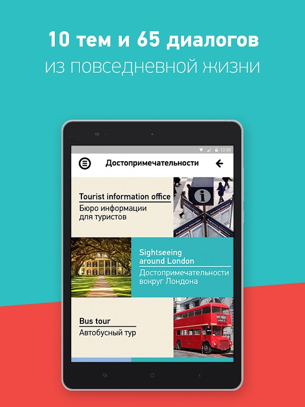 Uygulama hem dinleme bir anadili tarafından okunan Rusça çevirisi ile diyalog yanı sıra egzersizleri içerir.