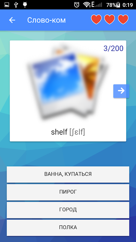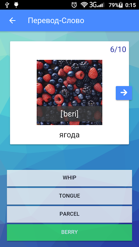 1. İngilizce bir kelime görüyorsunuz ve doğru Rusça kelimeyi seçmeniz gerekiyor;
