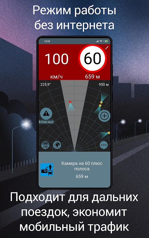 Antiradar M, Rusya, Kazakistan, Beyaz Rusya, Azerbaycan, Ermenistan, Gürcistan, Ukrayna, Almanya ve Finlandiya'dan kameralar ve tehlikeli nesneler içermektedir. İnternet olmadan çalışabilir. Çevrimdışı mod için, yolculuktan önce kamera tabanını güncellemeniz yeterlidir.