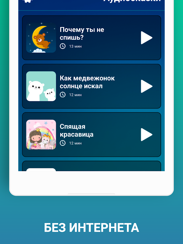 Uygulamanın ana avantajlarından biri, onu internete erişmeden kullanabilmenizdir. Bu, ağ bağlantısı olmasa bile çocuğun en sevdiği masalları her yerde ve her zaman dinleyebileceği anlamına gelir.
