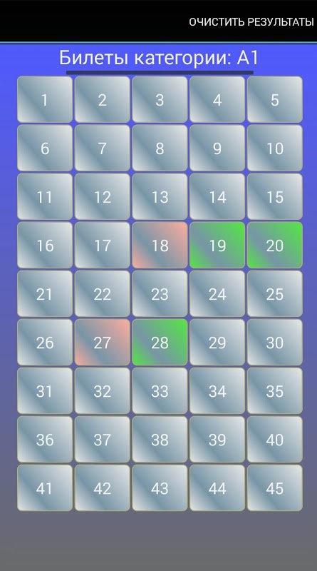 - Eğitim modu (kırmızı ele alınmamıştır hatalı karar biletleri, gri kartlar, görüntülenen doğru çözülür yeşil bilet vurgulanır.), Herhangi bir sırayla bilet çözmek çözüm sonuçlarının bir geçmişini tutmak için izin verir