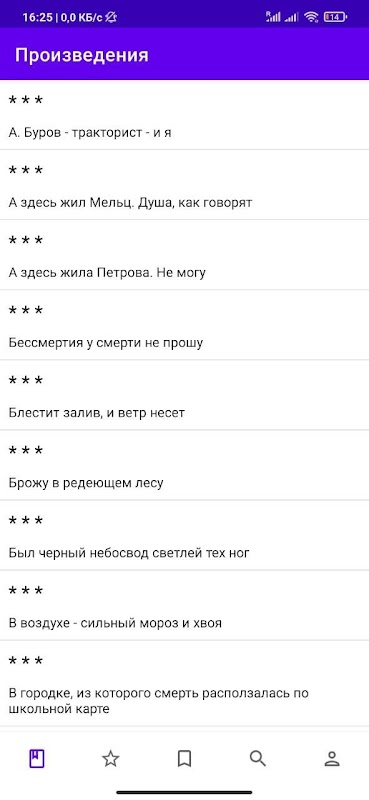 1. 5 разделов : Произведения, избранные, закладки, поиск, биография