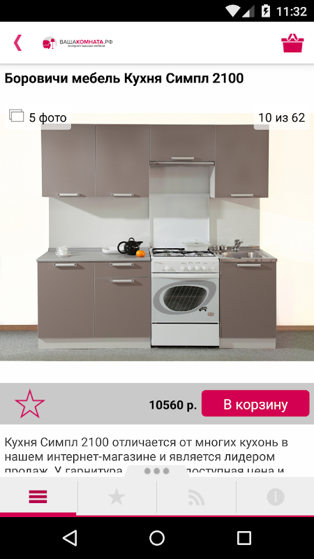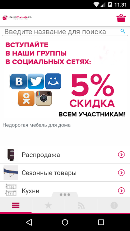 Интернет-магазин мебели Вашакомната.рф предлагает широкий выбор продукции, удобные сервисы, приятное обслуживание и крайне выгодные варианты доставки. Мы постоянно пополняем свой ассортимент товаров. На Вашакомната.рф разнообразно представлены: детская недорогая мебель, диваны, кухни, гостиные, мебель для ванной, шкафы, спальни, прихожие, компьютерные столы, офисная мебель и многое другое. Теперь дешёвая мебель стала ещё доступнее!