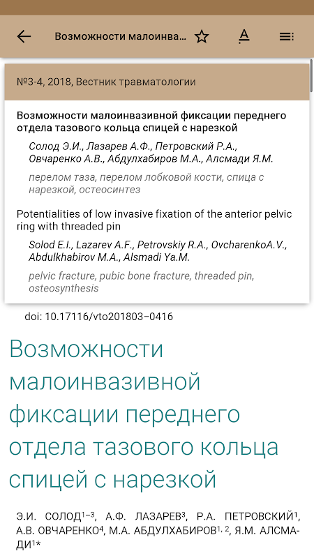 В журнале освещаются актуальные организационные и клинические проблемы современной травматологии и ортопедии, такие как множественные и сочетанные (в том числе и огнестрельные) повреждения опорно-двигательного аппарата, патология суставов, позвоночника, метаболические остеопатии, системные заболевания скелета, опухоли и опухолеподобные процессы. Публикуются результаты экспериментальных патофизиологических, морфологических и биомеханических исследований в травматологии и ортопедии, а также методики фармакологический коррекции, анестезиологического пособия и реабилитации при заболеваниях и повреждениях органов движения и опоры. Входит в перечень ВАК. Представлен в базах данных РИНЦ, Ulrich's Periodicals Directory, Google Scholar.