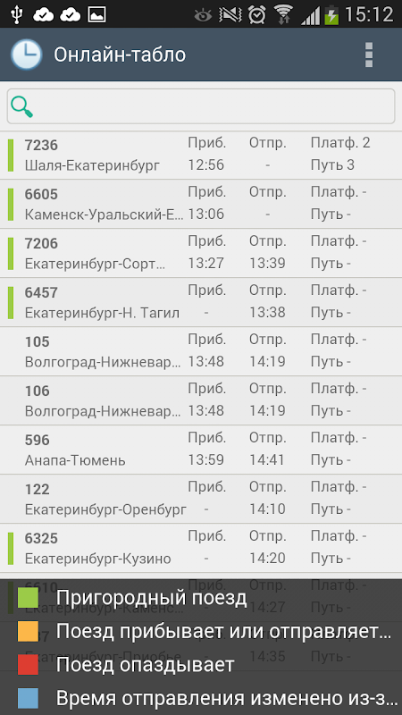 Приложение позволяет в реальном времени просматривать время прибытия и отправления, маршрутные направления и их статусы. Отображаемая информация загружается с официального сайта и является актуальной. Сведения о рейсах можно фильтровать по номеру поезда и пункту прибытия или отправления.