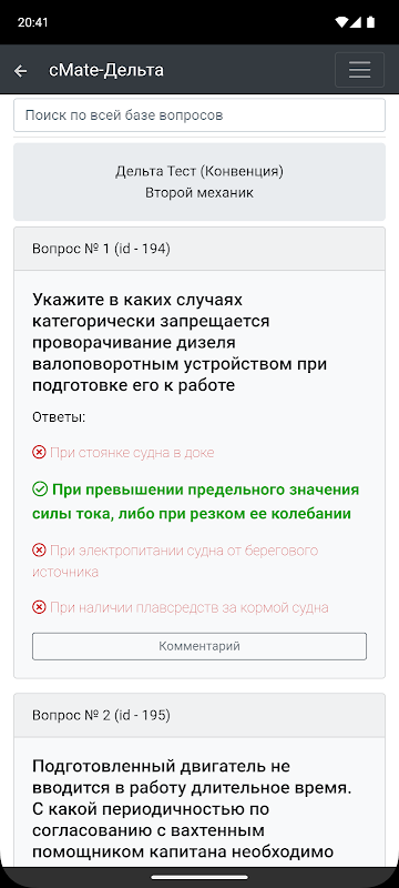 Uygulama, Delta Test Second Mechanic'in en son sürümü için soru ve cevaplardan oluşan bir veritabanı içerir (veritabanı, SKI Convention Plus'a hazırlık için geçerlidir).