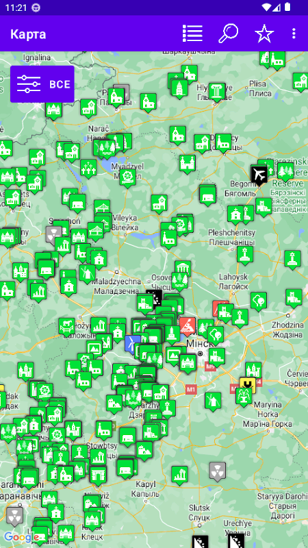 böylece zabroshki, kale, sığınak, kiliseler, çiftlikler ve - ilginç Belarus yerlerin haritası.