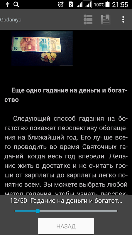 - если вы любите погадать на ночь,то не беда.Здесь есть режим чтения День/Ночь