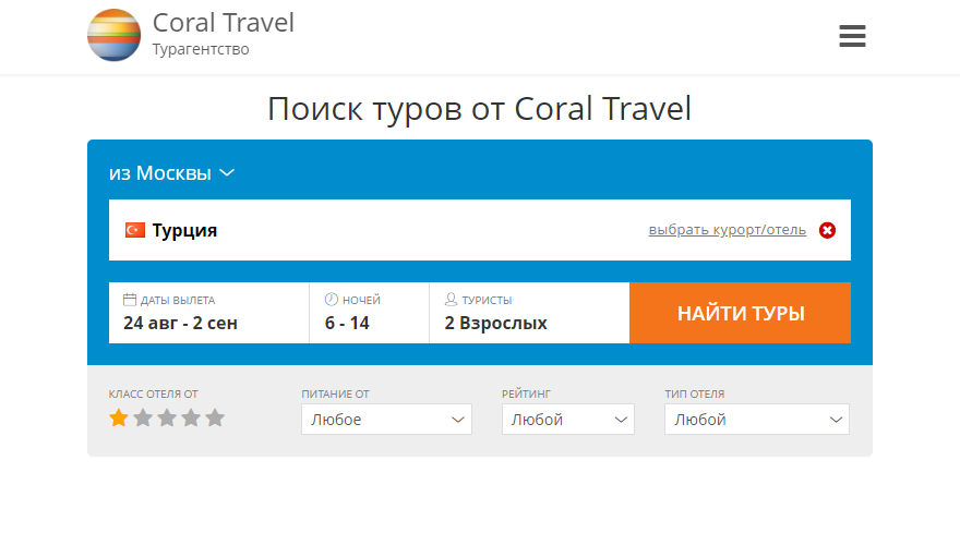 Son dakika turları - Coral Travel (Coral Travel) seyahat acentesi LLC "Online Group" - uygun bir çevrimiçi seyahat hizmeti.