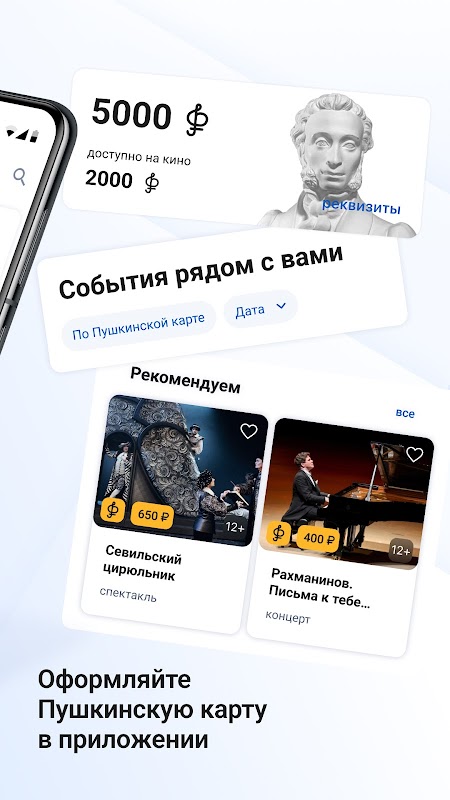 Puşkin Programı etkinliklerine 5.000 ₽ harcayabilirsiniz, bunun 2.000 ₽'ye kadarı sinema biletleri içindir.