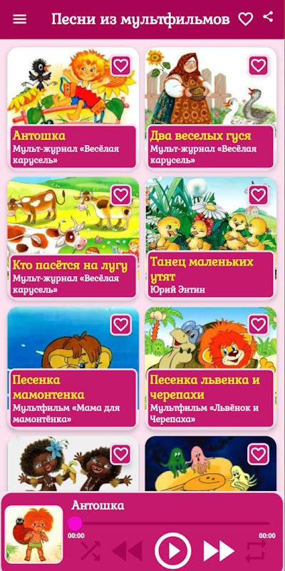 Müzik koleksiyonu "Karikatür Çocuk Şarkıları" iyi, dürüst, komik ve sevgili parçalar içeriyor.