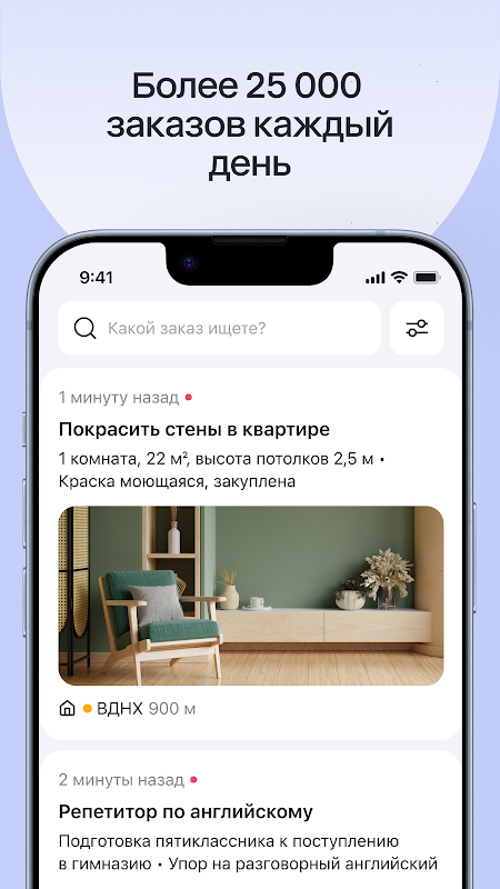 Pro'da her gün 20.000'den fazla sipariş görünür. Eğitmenler (sınav hazırlığı dahil), tamirciler, tesisatçılar, güzellik ustaları, BT serbest çalışanları, eğitmenler, avukatlar, temizlikçiler, kuryeler, kargo taşıyıcıları, kirpik ve manikür ustaları için siparişler var.