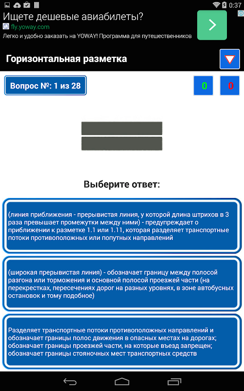 Дорожная разметка соответствует Правилам дорожного движения Российской Федерации на 2014 год и способствует эффективной подготовке к экзаменам по ПДД. Приложение состоит из трех разделов: перечень разметки и информации по ней, раздел запоминания разметки, раздел тренажер для проверки знаний разметки.