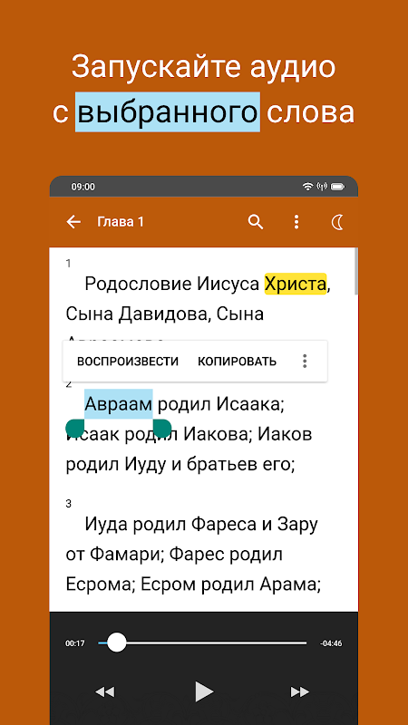 Uygulama, ses ve metin biçimindeki kitapları içerir: