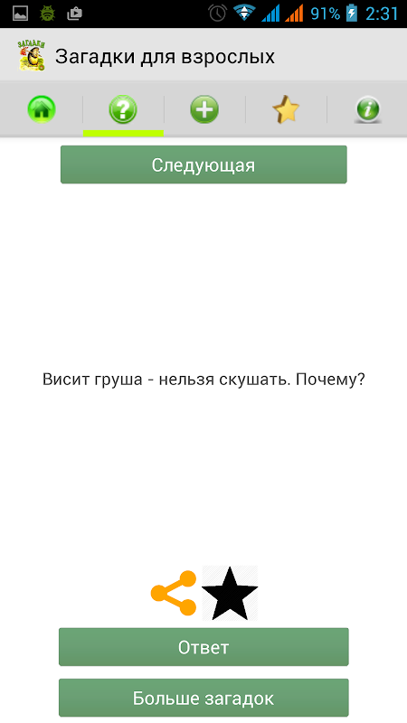Uygulama çoğu durumda cevap bilmeceler bazı hile yatıyordu çünkü, cevap bir acele çözme ve iyi düşünmek değil arzu hangi ilginç komik gizemleri bir dizi sunuyor, ve o sizin tarafınızdan verilen cevap tamamen farklı olacağını çok muhtemeldir.