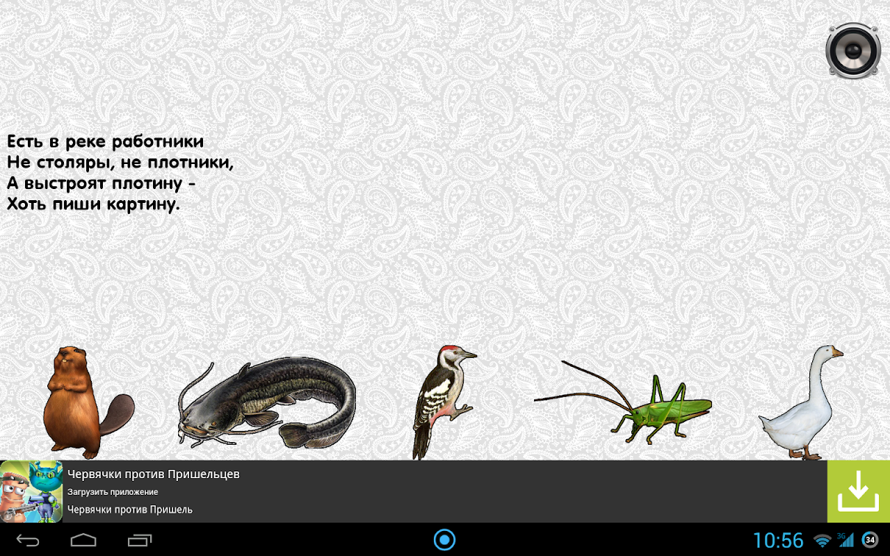 Чем хороша загадка? Она дает возможность мыслить логически, сопоставлять описания и в результате – верный ответ! Чтобы ребенку было легче ориентироваться, на экране рядом с текстом загадки расположены несколько картинок-отгадок, одна из которых верная. Каждая загадка озвучивается, как и ответ. В приложении нет уровней, загадки появляются в результате свободной выборки. А чтобы было еще интересней – о каждом животном есть несколько разных загадок!