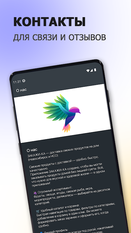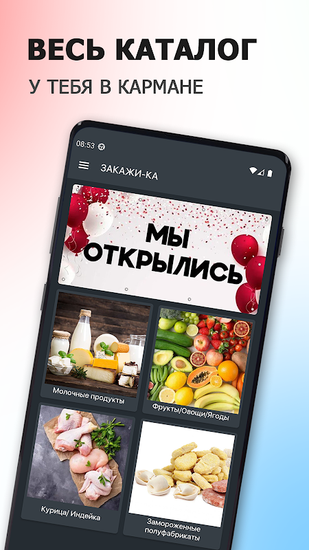 ZAKAZHI-KA uygulaması, gereksiz yere uğraşmadan evinize yiyecek siparişi verebilmeniz için tasarlanmıştır. Lezzetli ve sağlıklı bir yaşam için ihtiyacınız olan her şey tek bir uygulamada!