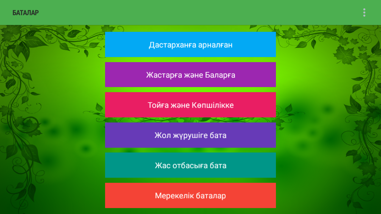 Туған күнге тілек Үйлену тойға Қыз ұзатуға Құдалық Мерейтой Сүндет той Тілашар тойы Шілдехана бесік тойы Тұсаукесер тойы Беташар Алтын той Күміс той 18 жас 25 жас 30 жас 40 жас 50 жас 55 жас 60 жас 63 жас 70 жас 80 жас Ораза айт Қадір түні Тылек Туган кун Казакша Қазақша құтықтаулар Куттыктаулар