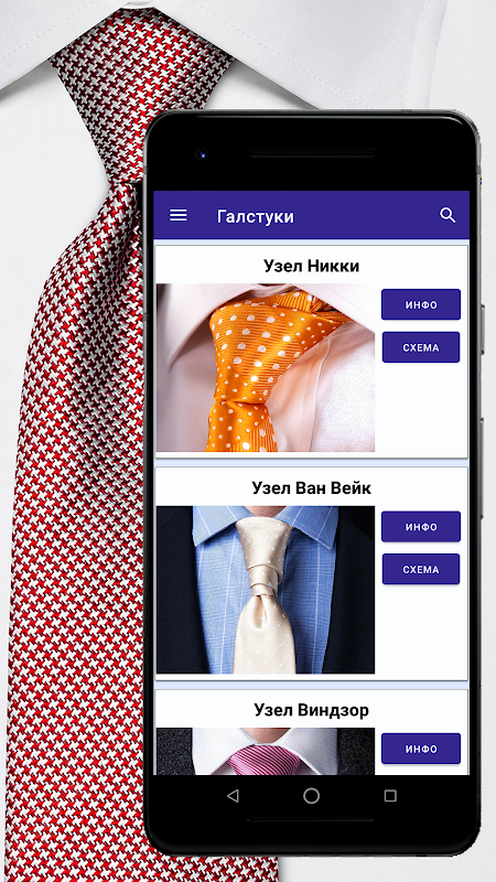 Uygulama, kravat bağlamanın en popüler ve modaya uygun, güzel ve pratik yollarını ele alıyor.