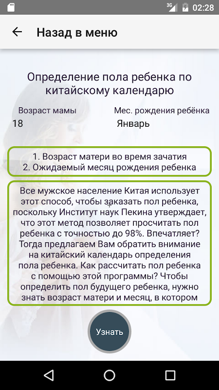 - В раздел узнать пол ребёнка, китайский календарь расширен до 45 лет
