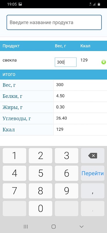 Tek bir ürünü veya gerekli sayıda ürünü seçebilirsiniz. Hesaplayıcı, seçilen gıdalardaki toplam kilokalori sayısını (kcal) ve bunların protein, yağ ve karbonhidrat içeriğini gösterecektir.