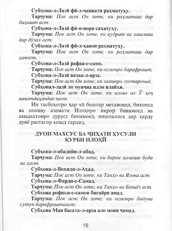 Китоби Дуоҳо барои пешрафти кор, саломатӣ, хушбахти, барори кор ва ғайраҳо.