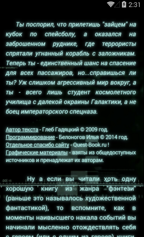 Ты поспорил, что прилетишь "зайцем" на кубок по спейсболу, а оказался на заброшенном руднике, где террористы спрятали угнанный корабль с заложникам. Теперь ты - единственный шанс на спасение для всех пассажиров, но...справишься ли ты? Уж слишком агрессивный мир вокруг, а ты - всего лишь студент космолетного училища с далекой окраины Галактики, а не боец императорского спецназа.