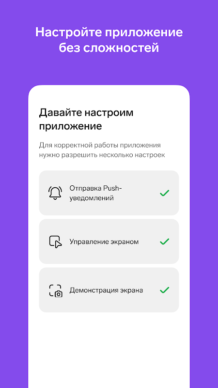 Uygulamanın düzgün çalışmasını sağlamak için, bir destek uzmanının cihazınızı yönetmesine ve ekranınızı görüntülemesine olanak tanıyan "Erişilebilirlik Hizmeti" kullanılır.