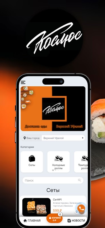 Teslimat restoranı "Cosmos"! Suşi, rulolar, pizza, salatalar, atıştırmalıklar ve diğer yemekler! Lezzet, kalite! Eve teslim! promosyonlar ve indirimler!