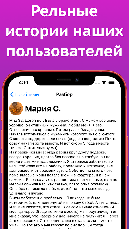 Это приложение — про психологию. Здесь вы можете поделиться своей проблемой с другими людьми. Люди прокомментируют вашу проблему и помогут разобраться с ситуацией.