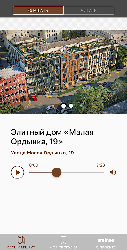 Мобильное приложение-аудиогид по Замоскворечью. Начните прогулку по этим, богатым достопримечательностями, местам без строгого маршрута или проложите свой личный среди более чем полусотни домов, храмов, театров и парков района.