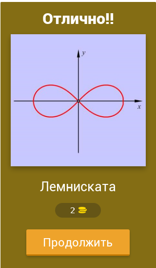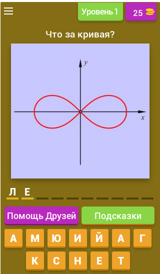 Для того, чтобы пройти уровень, тебе надо внимательно изучить изображение и угадать название изображённой кривой, математического термина или имя известного учёного. Угадав слово, ты открываешь новый уровень в викторине. С каждым обновлением количество уровней будет увеличиваться. Данная версия игры исполнена на русском языке.