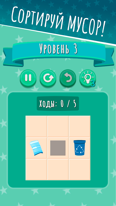 Plastik, atık kağıt ve pilleri toplayın - sıralayın ve daha fazla yıldız kazanmak için mümkün olduğunca az hamle yapın!