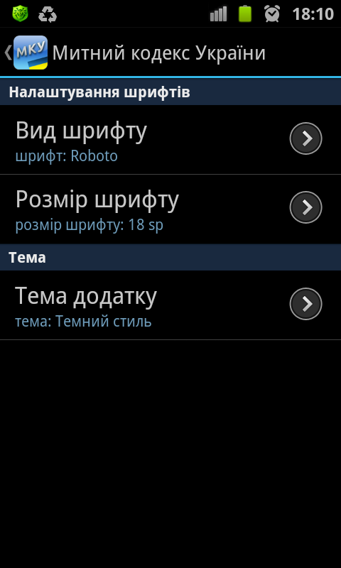 3. Різні налаштування - ви можете змінити шрифт і тему додатка.