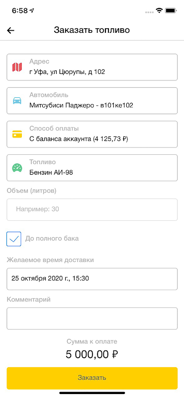 Мобильная АЗС - приложение, которое позволяет заправить Ваш автомобиль в удобном для Вас месте и в удобное время в г. Уфе.