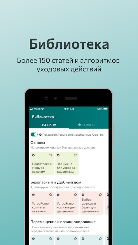 Mobile Caregiver uygulamasında, kanser, demans, Parkinson hastalığı olan kişilerin yanı sıra çeşitli stoma, felç veya kalça kırığı türlerinin sonuçlarını yaşayan kişilerin bakımını kolaylaştıran araçlar topladık.