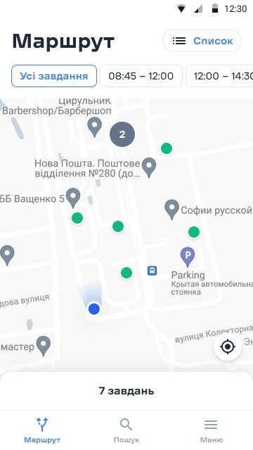 Teslimat/teslim alma görevleri, iş gününün en iyi şekilde planlanması için kuryeye ana "Rota" ekranında otomatik olarak görüntülenir. Görev sırasını planlama yeteneği (bir rota planlama). Tamamlanacak görevler kullanıcının tamamladığı planlamaya göre sırayla görüntülenir. Görevler, Müşterilerin ziyaret etmesi planlanan ziyaret adreslerine göre ve her Müşterinin teslimat/teslim alma görevlerine göre ayrı ayrı yapılandırılır. Her görevle ilgili ayrıntılı bilgileri görüntüleyin. Harita üzerinde Müşteriye rota oluşturma imkanı.