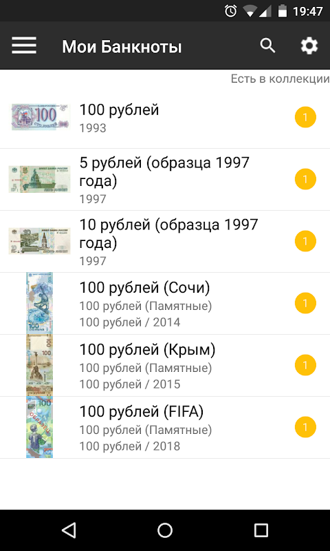 Uygulama zaten Rus ve SSCB banknotlarının kataloglarını içeriyor. Ancak asıl özelliği tüm katalogların kullanıcılar tarafından oluşturulup güncellenmesidir. Kendiniz şunları yapabilirsiniz:
