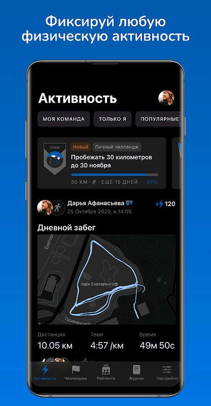 Командные и персональные челленджи на любой вкус, система уведомлений и поддержка. Каждый день вы найдёте для себя что-то новое.