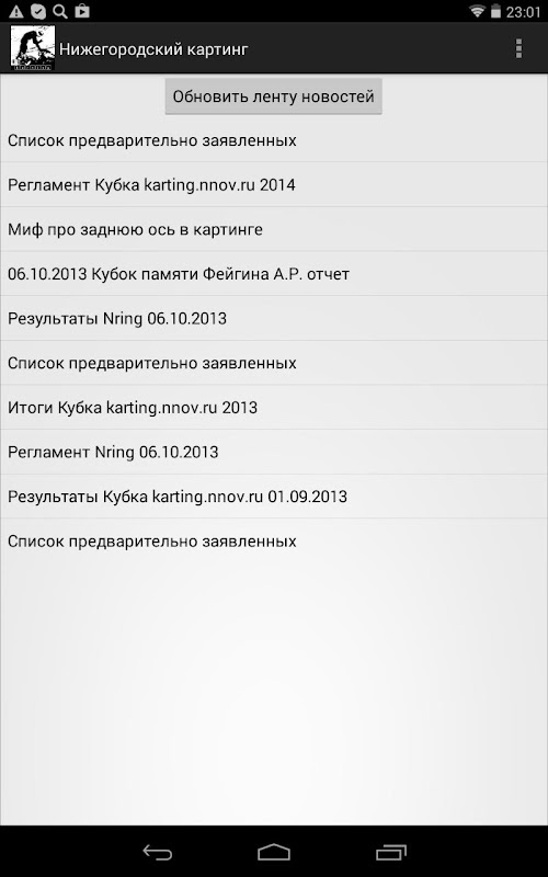 Мобильное приложение сайта http://karting.nnov.ru, посвященного целиком картингу в Нижегородской области.