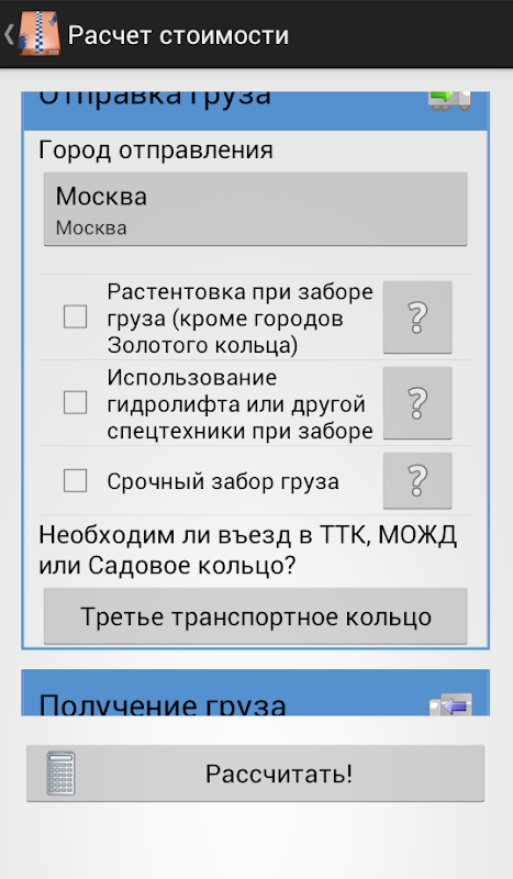 + Калькулятор стоимости отправки груза. Теперь Вы можете рассчитать сумму перевозки посылки прямо из приложения