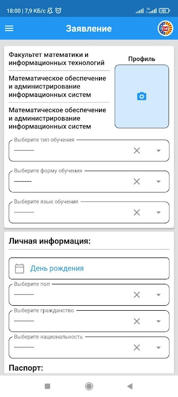 Приложение абитуриентов поступающих в Ошский Государственный университет